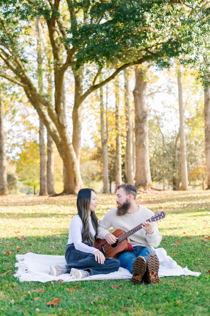 When photographing Furman University engagement sessions, I like to stay around the lake where the Koi Pond is. When photographing near golden hour, I’m able to hop from one set of Instagram photo spots to another: the Bell Tower line of trees, the lawn with the Bell Tower in the back, the willow tree, the Susan Shi Garden / Koi Pond, and even the Duke Energy Village.